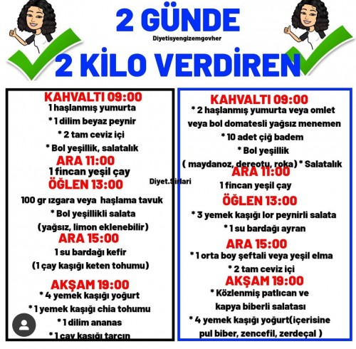 2 Günde 2 Kilo Verdiren Diyet