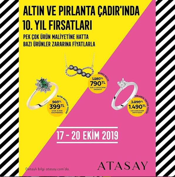01 mayıs 10 mayıs 2015 tarihleri arasında atasay mağazalarındaki altın ve pırlantalı ürünlerde yapacağınız 750 tl ve üzeri tüm alışverişlerde 925 ayar gümüş unistar zirkon. Superbrand alan tek marka. 16ya kadar aynı gün kargo. Kampanya kapsamında tüm altın ve pırlanta ürünler değişime getirilebilir.