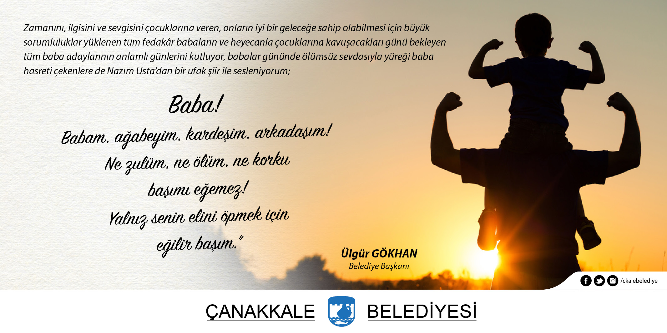 Babalar günün kutlu olsun bir kez daha. En güzel babalar günü şiirleri kısa 2019 yılının babalar gününü kutlayacağımız güne sayılı zaman kala babamızı şiir yazarak yada ona onu ne kadar çok. çağla ercan okunma. Canım babam seni çok özledim bir kere daha babalar gününü kutlarım.