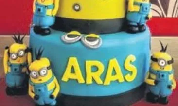 Doğum günü pastasının üzerindeki karakterler kağıt baskı olarak hazırlanmıştır. 160 160 210. Doğum günü pastasının alt ve üst kenar köşelerinde yeşil şeker hamurundan çiçek figürleri yapılmıştır.