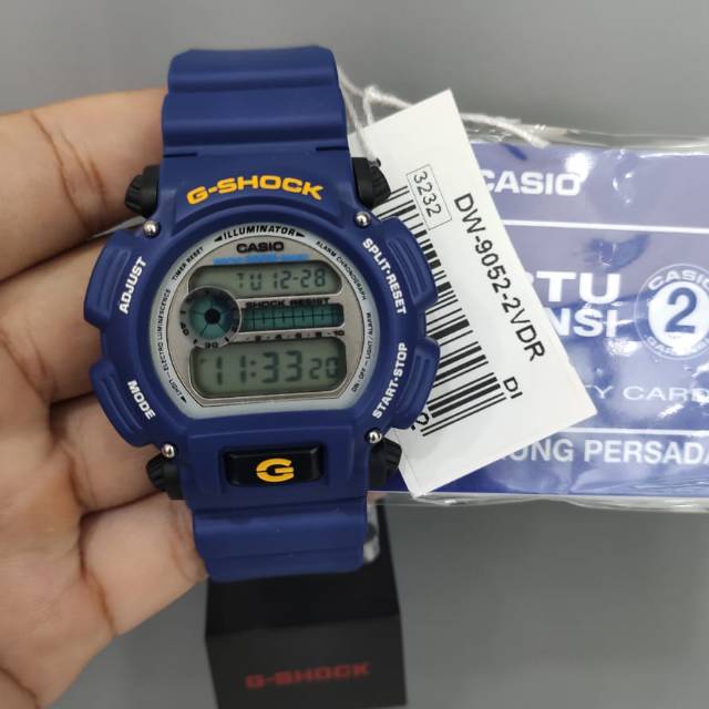 Casio model number dw9052 1vcf part number dw9052 1vcf item shape round display type digital case diameter 46 millimeters case thickness 15 millimeters band width. A perfect quote to describe g shock dw9052. G shock is constantly setting new standards for timekeeping toughness the popular dw 9052 start out with a basic g shock black which is then accented with brilliant gold accents. The model s been around since 2002 and hasn t seen any significant changes.