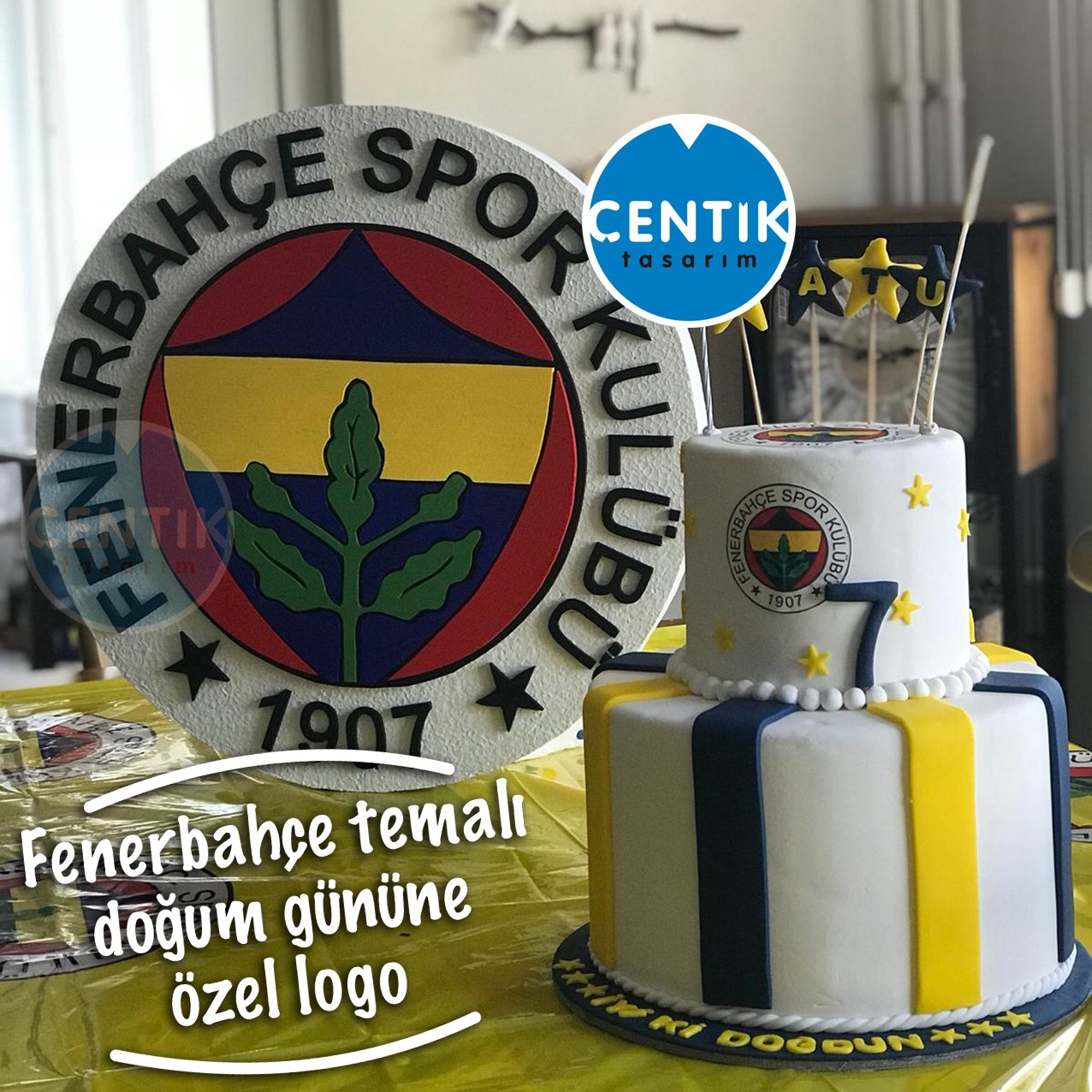 Daha sonra kremamızı yeteri kadar sütle hazırlayıp onu da dolaba atıyoruz. Krem şantilerden birini sarı birini mavi gıda boyasıyla hazırlıyoruz. Fanatik fenerbahçeli olanlar için özel üretilmiş şeker hamuru pastası modeli olan fenerbahçeli pastasıdır pastalarımız günlük üretim olmakta ve günlük sipariş almaktayız. Futbol takımınızın tabak bardak peçete masa örtüsü gibi kullan at ürünlerinin yanı sıra masa süsleri asma süsler fenerler ponponlar ve harf afişler ile tüm parti meklanınızı futbol temalı bir parti için hazır hale getirebilirsiniz.