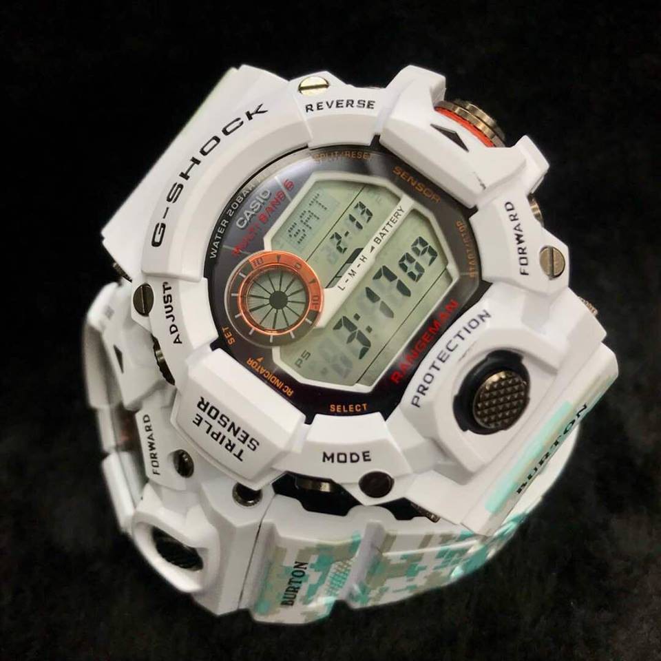 G shock and burton collaboration features work of photographer dean blotto gray. Shock resistant watch brand casio g shock has just unveiled it is teaming up with renowned snowboard brand burton to release a limited edition mudmaster timepiece the ggb100btn 1a was designed to tie in the rugged conditions that the models are built to withstand with the snowy mountain landscape that. Casio america listed the upcoming burton x g shock mudmaster ggb100btn 1a on its website which is the snowboarding company s third collaboration with g shock the limited edition watch fuses the ultra ruggedness of the mudmaster gg b100 with a style inspired by snowboarding in the mountains. The g shock gw9400btj 8 rangeman is a limited edition watch produced in collaboration with burton snowboards and casio.