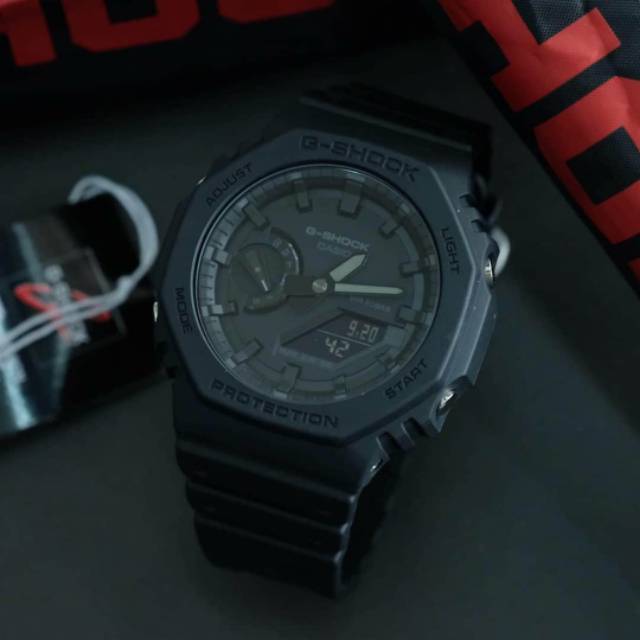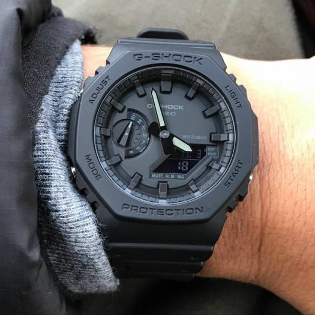 G shock ga 2100 1a1. Jual casio g shock ga 2100 1a1 full black original dengan harga rp2 749 000 dari toko online cuanwatch jakarta pusat. Click to view larger image. High strength resin material which is reinforced with carbon fibers makes it possible to create a case that is a mere 11 8 mm thin which is the thinnest among g shock combination models. The ga 2100 sword shaped minute and hour hands won t please lumatics but the lume s bright enough for one handed time check in the dark and they save battery power.