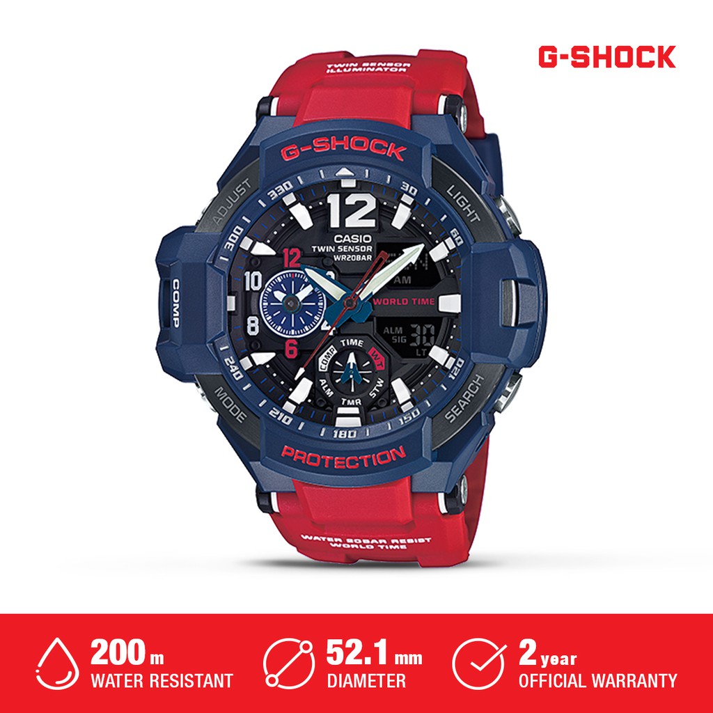As part of the master of g series it features the latest technology and is intended for professional use. The g shock gravitymaster aviation series is one of the most exciting and popular g shock specialty lines. The g shock gr b200 gravitymaster forgoes the solar power of the previous gr b100 but adds a carbon core guard structure quad sensor with step tracker and carbon fiber bezel. All the aviation gravitymaster models are large size watches with analog displays.