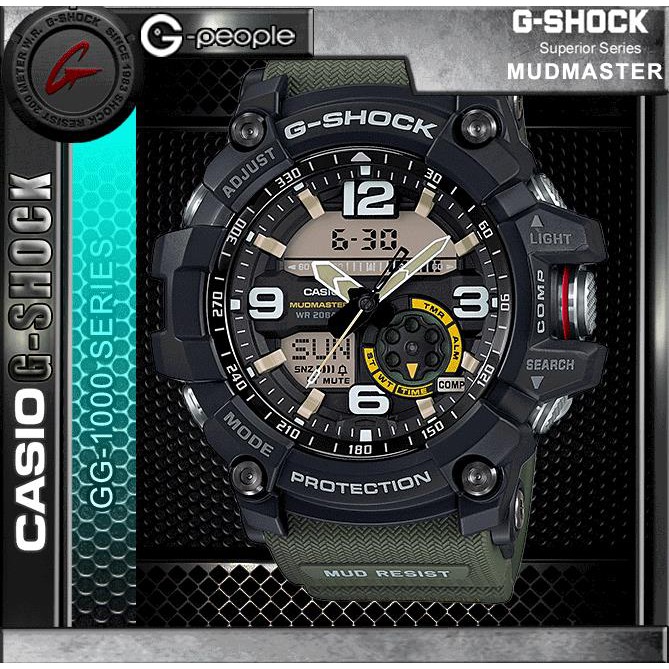 The mudmaster with twin sensor and battery operation features digital compass and thermometer readings to assess the outdoor environment. The special design of the buttons and the casing prevents dirt dust and sand from entering. G shock japan announced the gg 1000 series for an april 2016 release with the model numbers gg 1000. The gg 1000 is an all new analog digital g shock design for 2016.