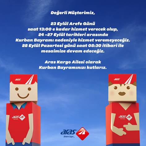 Aras kargo çalışma saatleri hafta içi her gün sabah tam 08 30 da başlar ve kapanış saati olan 18 00 a kadar hizmet vermeye devam eder. Kurban bayramı nın 10 gün tatil ilan edilmesinin ardından bu hafta ve bayramda kargo gönderecekler kargolar bayramda açık mı sorusunu sormaya başladı. Peki hangi kargo şirketi hangi gün çalışıyor. Pazar günü ptt ve özel kargo şirketleri üzerinden kargo göndermek isteyenler pazar günü kargoların açık olup olmadığını merak ediyor.