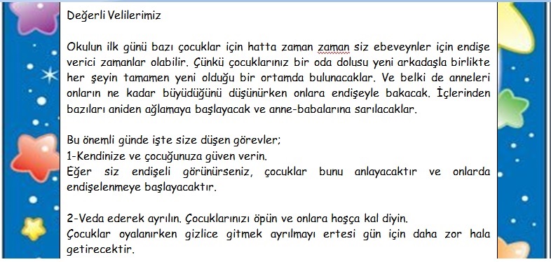 Okul öncesi Okulun Ilk Günü Etkinlikleri